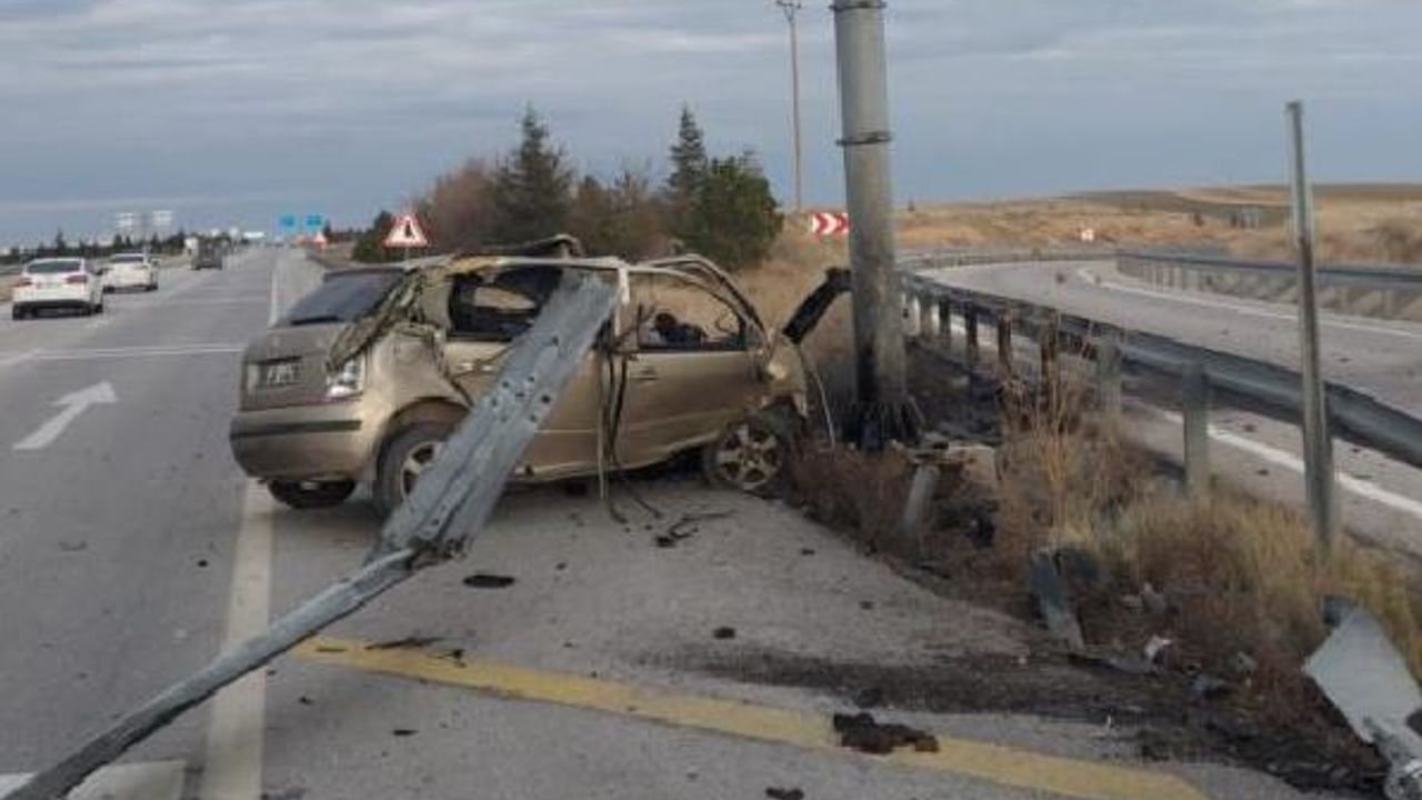 Savrulan araç önce bariyerlere ardından beton direğe çarptı. Kazada kopan bariyerler aracın içine girerken, sürücü şans eseri hurdaya dönen araçta yaralı olarak kurtuldu.