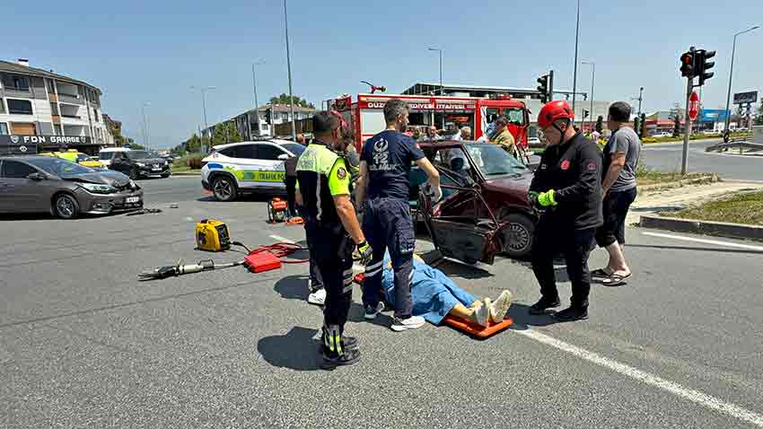 Kaza, Olimpiyat kavşağında meydana geldi. Alınan bilgilere göre, Sakarya'dan Düzce istikametine seyreden Furkan Kün idaresinde ki 06 BFM 212 plakalı Toyota marka otomobil, kavşakta Namık Mişe idaresindeki 54 D 9139 plakalı otomobille çarpıştı. Kazada 54 D 9139 plakalı otomobildeki sürücü Namık Mişe ile yanındaki Asiye Mişe ve Gülsüm Mişe yaralandı. İhbar üzerine bölgeye itfaiye sağlık ve polis ekipleri sevk edildi. Araçta sıkışan Asiye Mişe ekiplerin çalışması ile çıkarılarak sağlık ekiplerine teslim edildi. Yaralı 3 kişi ambulansla hastaneye kaldırıldı. Kaza sebebi ile tek şeritten sağlanan trafik araçların kaldırılmasıyla normal seyrine döndü. Kaza ile ilgili inceleme başlatıldı.