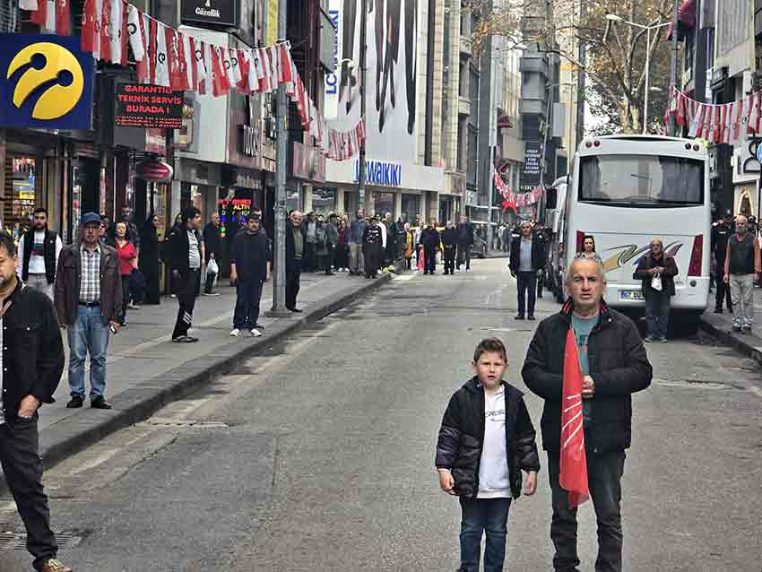 Saygı duruşu anonsunun yapılmasının ardından yalnızca miting alanındaki vatandaşlar değil, çevrede bulunan ve mitinge katılmayan birçok kişi de bulunduğu yerde saygı duruşuna geçti. Gazipaşa Caddesi ve çevresinde trafik akışı yavaşlarken, cadde adeta sessizliğe büründü.
