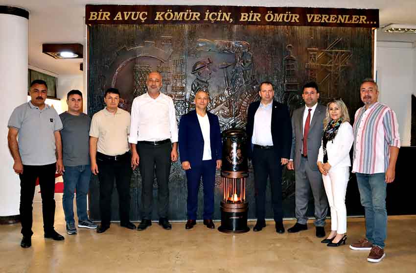 GMİS Genel Sekreteri Yener Arslanbuğa, MTA Kuzeybatı Anadolu Bölge Müdürü Özgür Özgüç’e ziyaretin anısı olarak madenci heykeli takdim etti.