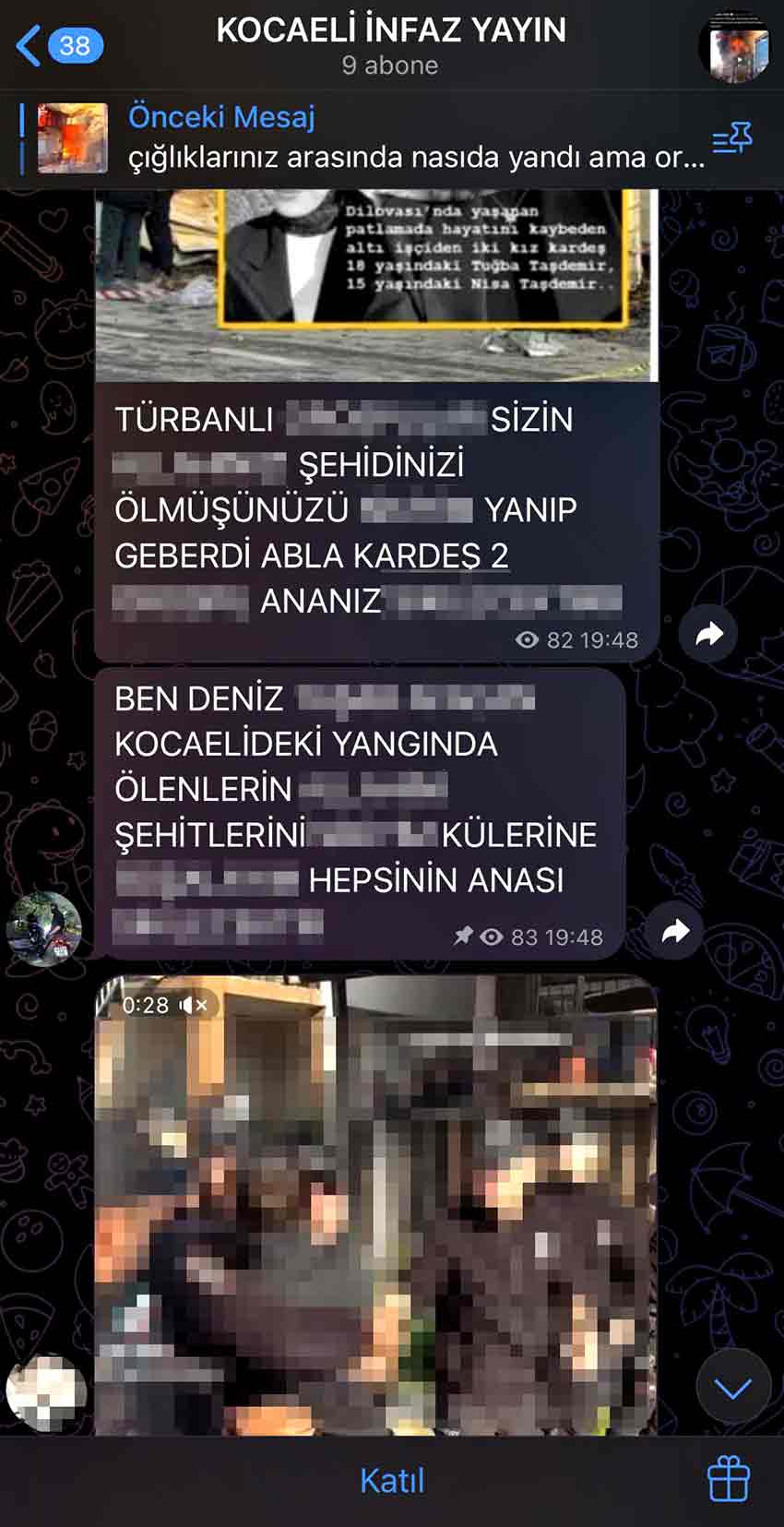 Olayın ardından "Kocaeli İnfaz Yayın" isimli bir Telegram sayfasında, yangında ölen vatandaşlara yönelik küfürlü ve hakaret içerikli paylaşımlar yapıldığı ortaya çıktı. D.Y.A. ve B.T. ismini kullanan şahısların hayatını kaybedenlerin fotoğraflarını paylaşarak küfürlü yazışmalar yaptıkları ve kendilerine tepki gösteren maktul yakınlarına da aynı şekilde karşılık verdikleri öğrenildi. Şahısların devlete ve şehitlere yönelik hakaret içerikli ifadeler de kullandığı paylaşımları, sosyal medyada büyük tepki çekti. Söz konusu şahıslar hakkında şikayetçi olunduğu öğrenildi.