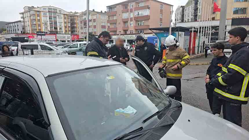 Edinilen bilgiye göre, ilçede bir alışveriş merkezi önünde park halindeki araçtan gelen yoğun koku çevredeki esnafın dikkatini çekti. Durumdan şüphelenen vatandaşlar, 112 Acil Çağrı Merkezi'ni arayarak ihbarda bulundu. Kısa sürede olay yerine polis ve itfaiye ekipleri sevk edildi. Ekipler araç çevresinde güvenlik önlemi alırken, araç sahibi alışveriş merkezinden çıkıp aracının başına geldiğinde polis ve itfaiye ekiplerini görünce şaşırdı. İtfaiye ekiplerinin yaptığı detaylı incelemede, aracın jantlarının yeni boyandığı ve jant içindeki malzemelerin sıcak nedeniyle ısınarak kokuya sebep olduğu tespit edildi.