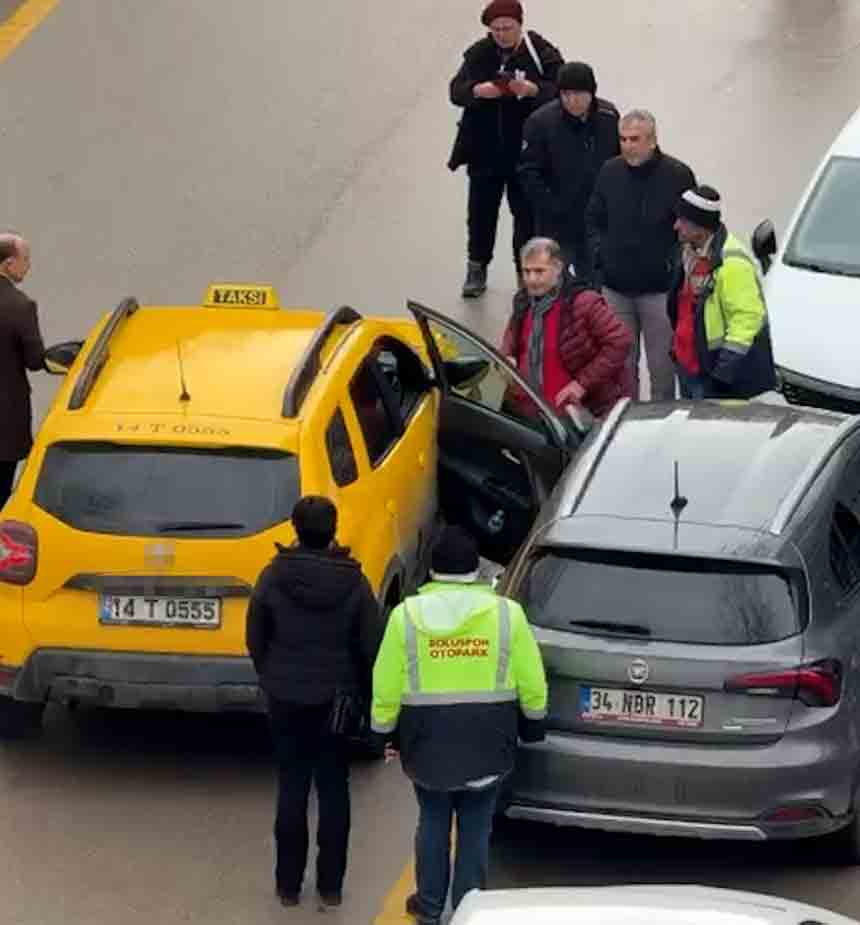 Bolu’nun Karaçayır Mahallesi Eflatun Sokak’ında ilginç bir kaza meydana geldi. Sokak üzerinde seyreden 14 T 0555 plakalı taksi, park halindeki 34 NBR 112 plakalı aracın açılan kapısına çarptı.