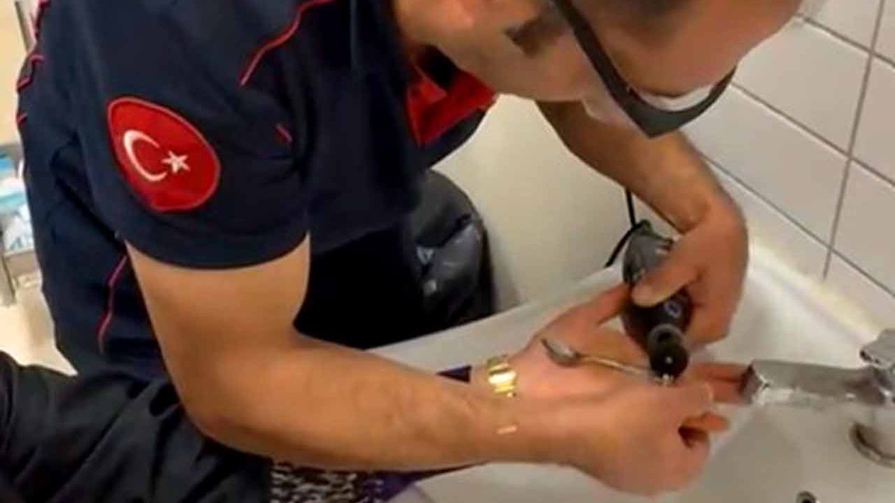 Edinilen bilgiye göre, parmağına sıkışan yüzüğü çıkartamayan kadın, Kastamonu Eğitim ve Araştırma Hastanesi Acil Polikliniğine müracaat etti. Hastane personeli tarafından Kastamonu itfaiyesine bilgi verildi. Hastaneye gelen itfaiye ekibi, özel aparatlarla yüzüğü keserek çıkardı.