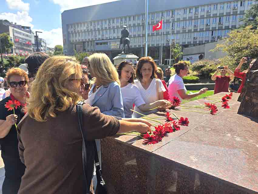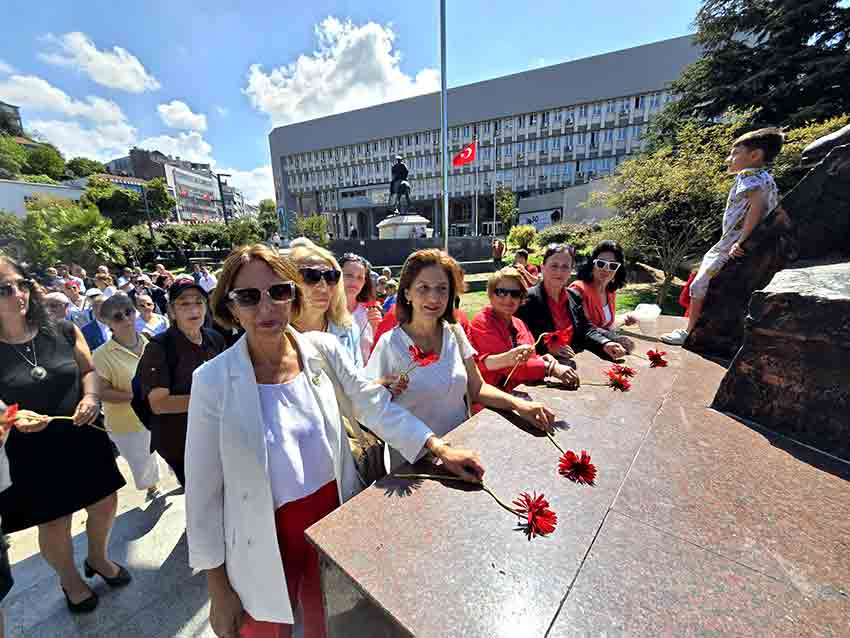 Zonguldak Atatürk Anıtı'nın ardından İsmet İnönü Parkı'nda saygı duruşu yapıldı ve İstiklal Marşı okundu. İsmet İnönü Anıtı'na çelenk koyan partililer ardından Şehitlik Anıtına kırmızı karanfiller bırakarak saygı duruşunda bulunuldu.