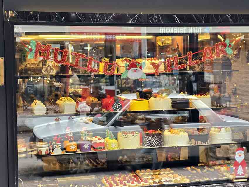 Umay Pasta ve Unlu Mamülleri Müdürü Gülümser Gürses Özsoy, Yeni yıla kısa bir süre kaldı. Sipariş usulü çalışıyoruz. Şimdiden siparişleri almaya başladık. Şu anlık çok rağbet yok ama ayın 20'sine doğru hareketliliğin başlamasını bekliyoruz. Pastalarımız 600 TL'den başlıyor. 1000 TL'ye kadar çıkıyor. Vitrinlerimizi süsledik yılın sonuna doğru yeni çeşitlerimizi vitrinlerimize koyacağız. Şimdiden tüm vatandaşlarımızın yeni yılını kutluyoruz " dedi.