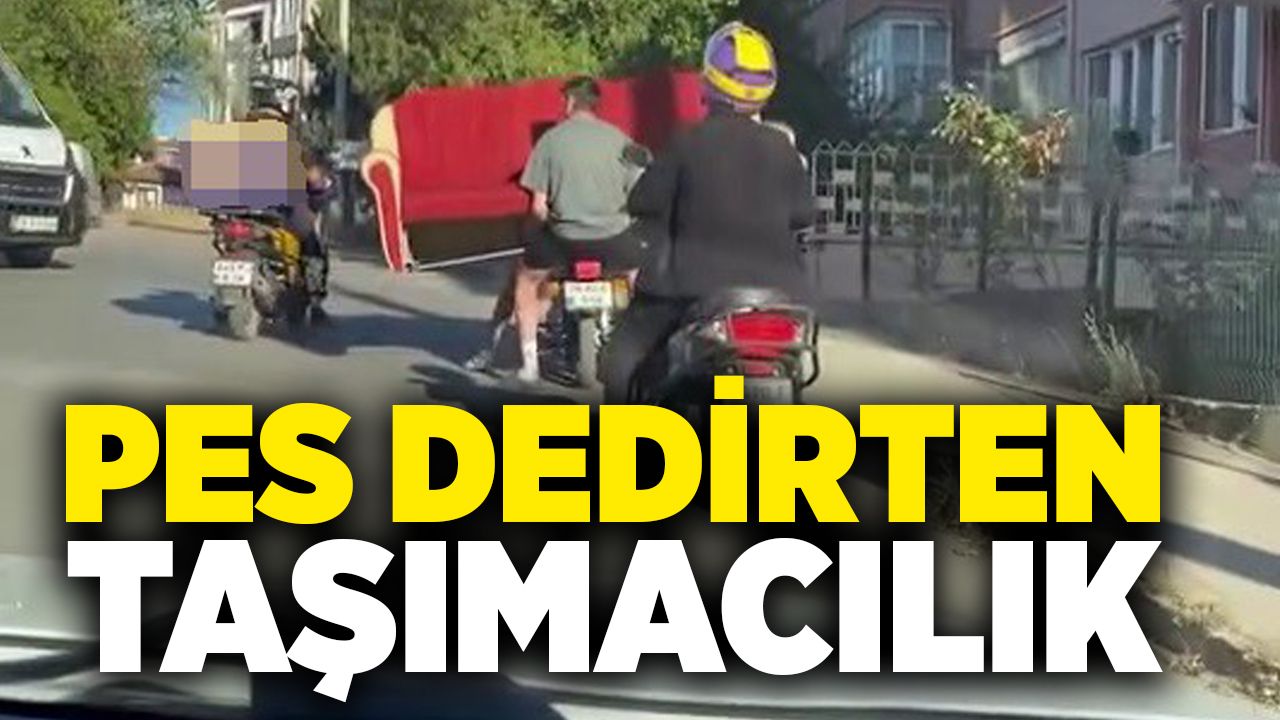 Trafik güvenliğini tehlikeye atan bu taşıma yöntemi, motosikletin arkasından gelen bir aracın yolcusu tarafından cep telefonu kamerasıyla görüntülendi. Sosyal medyada paylaşılan görüntüler, izleyenlere pes dedirtti.