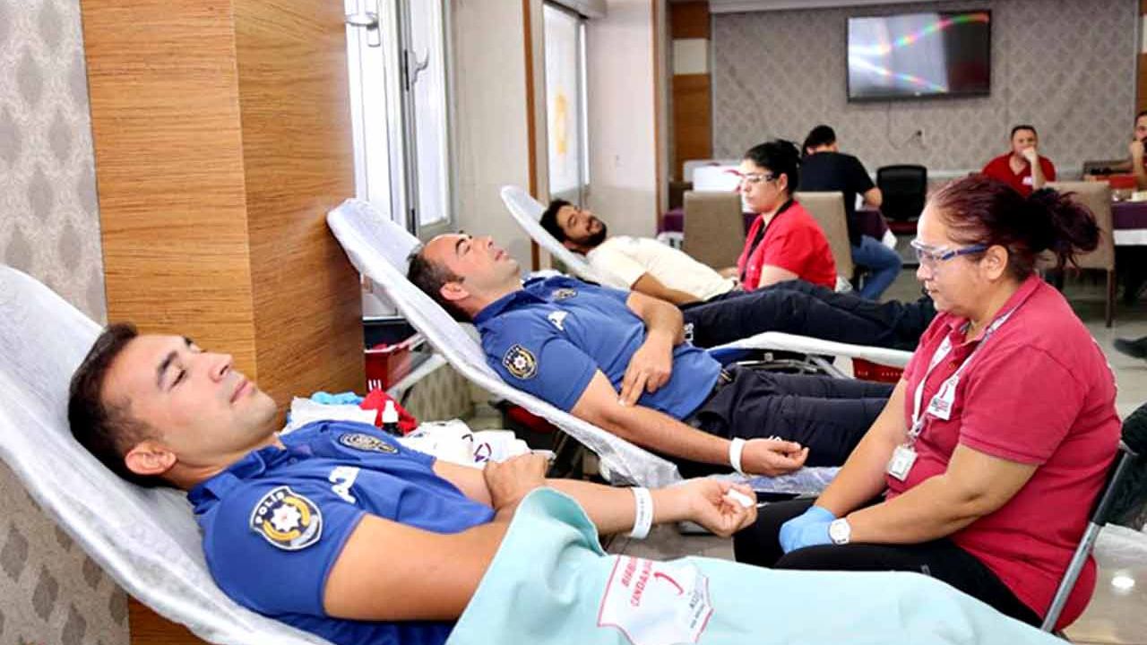 Aydın’da kan stokları kritik seviyelere düşerken, kanın her zaman ihtiyaç olduğuna dikkat çeken Aydın İl Emniyet Müdürlüğü’nde görev yapan polisler, duyarlılık örneği gösterdi. Kan bağışının önemine dikkat çeken emniyet ekipleri, düzenlenen etkinlikte kan bağışında bulundular. Çeşitli sebeplerle uzun süredir Aydın’daki kan stokları kritik seviyelere ulaşırken, özellikle yaz aylarında azalan kan stoklarını artırmak amacıyla gerçekleştirilen kan bağışı etkinliğine yoğun katılım gösteren polis ekipleri, herkesi kan bağışı yapmaya davet etti. İl Emniyet Müdürlüğü hizmet binasında gerçekleştirilen etkinlikte kan bağışı yapan ekipler ayrıca kanın bir gün değil her gün ihtiyaç olduğunu hatırlattı.
