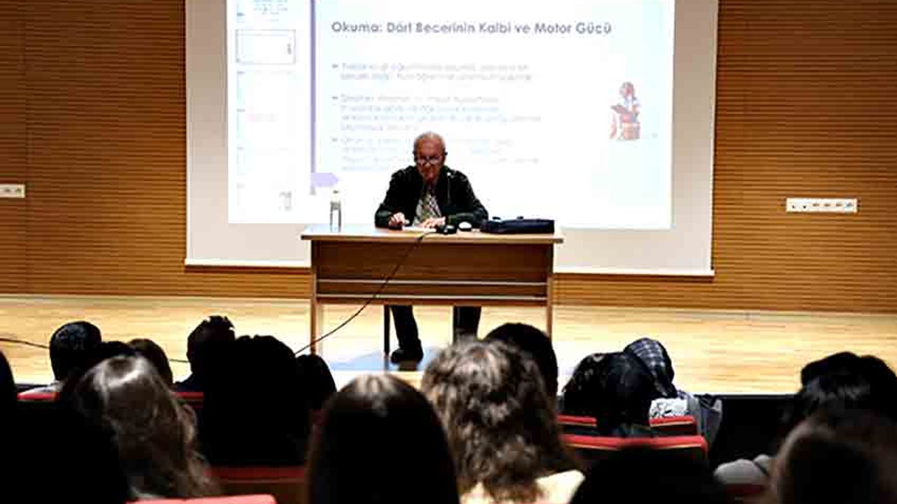 Düzce Üniversitesi Eğitim Fakültesi İngilizce Öğretmenliği Bölümü ve Kariyer Geliştirme Merkezi iş birliğiyle düzenlenen “Yabancı Dilde Dört Temel Becerinin Öğretimi: Sorunlar ve Çözüm Önerileri” konferansında Prof. Dr. Cengiz Tosun, yabancı dil öğretiminde önemli önerilerde bulundu.