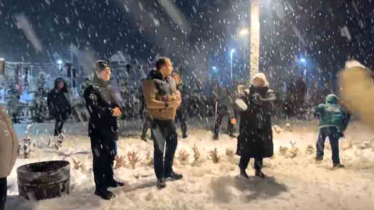 Bartın'ın Ulus ilçesinde etkili olan kar yağışı nedeniyle İlçe Kaymakamı Fırat Kadiroğlu, kurum müdürleri, hakimler ve savcıların da aralarında bulunduğu ilçe protokolü, meydanda vatandaşlarla buluşarak kar topu oynadı. Akşam geç saatlere kadar yoğun kar yağışının keyfini süren protokol ve vatandaşlar, ateşin etrafında ısınarak, halay da çekti.