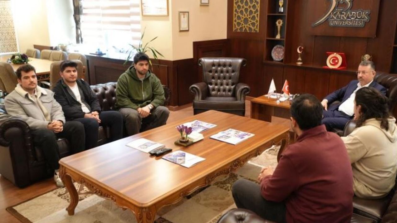 Karabük Üniversitesi (KBÜ) Evrenos İnsansız Kara Aracı Takımı üyeleri, Rektör Prof. Dr. Fatih Kırışık’ı makamında ziyaret ederek geliştirdikleri projeler ve yarışma planları hakkında bilgi verdi.