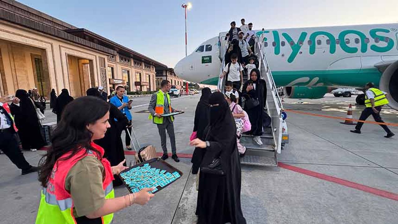 Suudi Arabistan'ın başkenti Riyad'dan Rize'ye gerçekleşen ilk uçuşta yolcular tulum eşliğinde törenle karşılandı.
