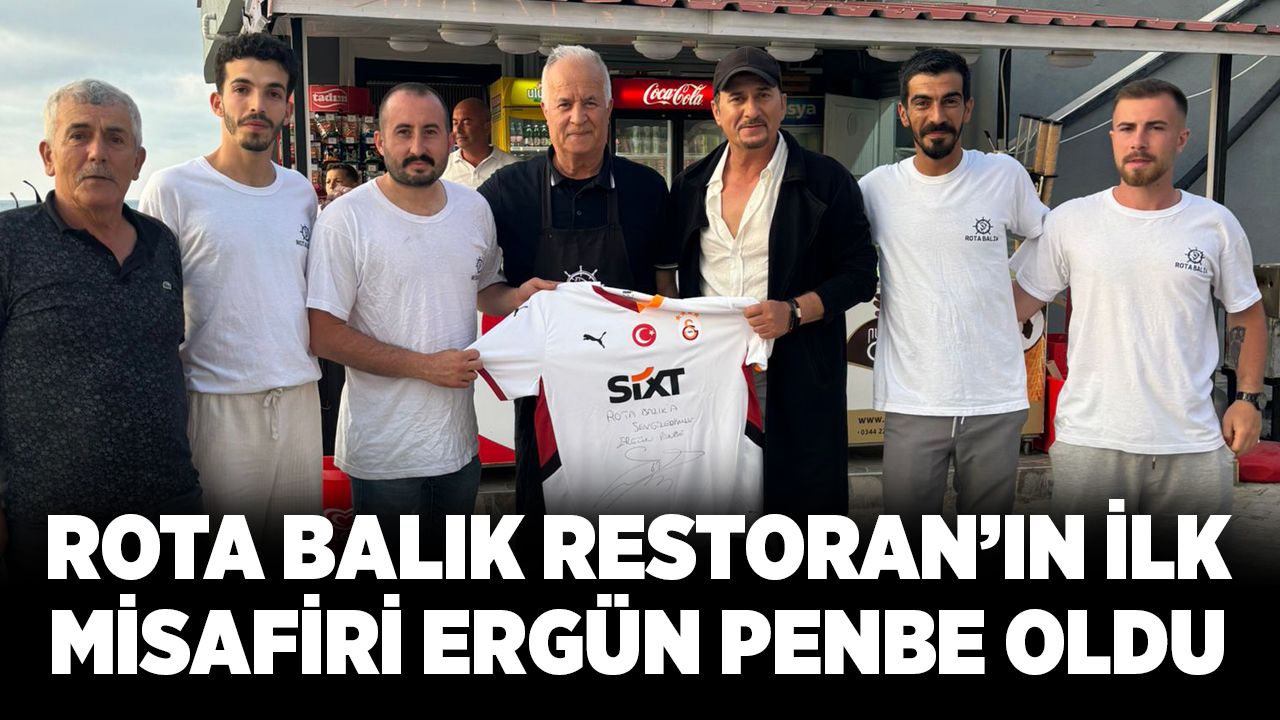 İşletmeciliğini Oğuzhan Pınar ve Olcay Özel’in yaptığı Rota Balık Restoran, kısa sürede halkın yoğun ilgisini çekti. Denize nazır konumu ve nezih ortamıyla dikkat çeken restorana gelen Ergün Penbe, işletmeye imzalı Galatasaray forması hediye etti.