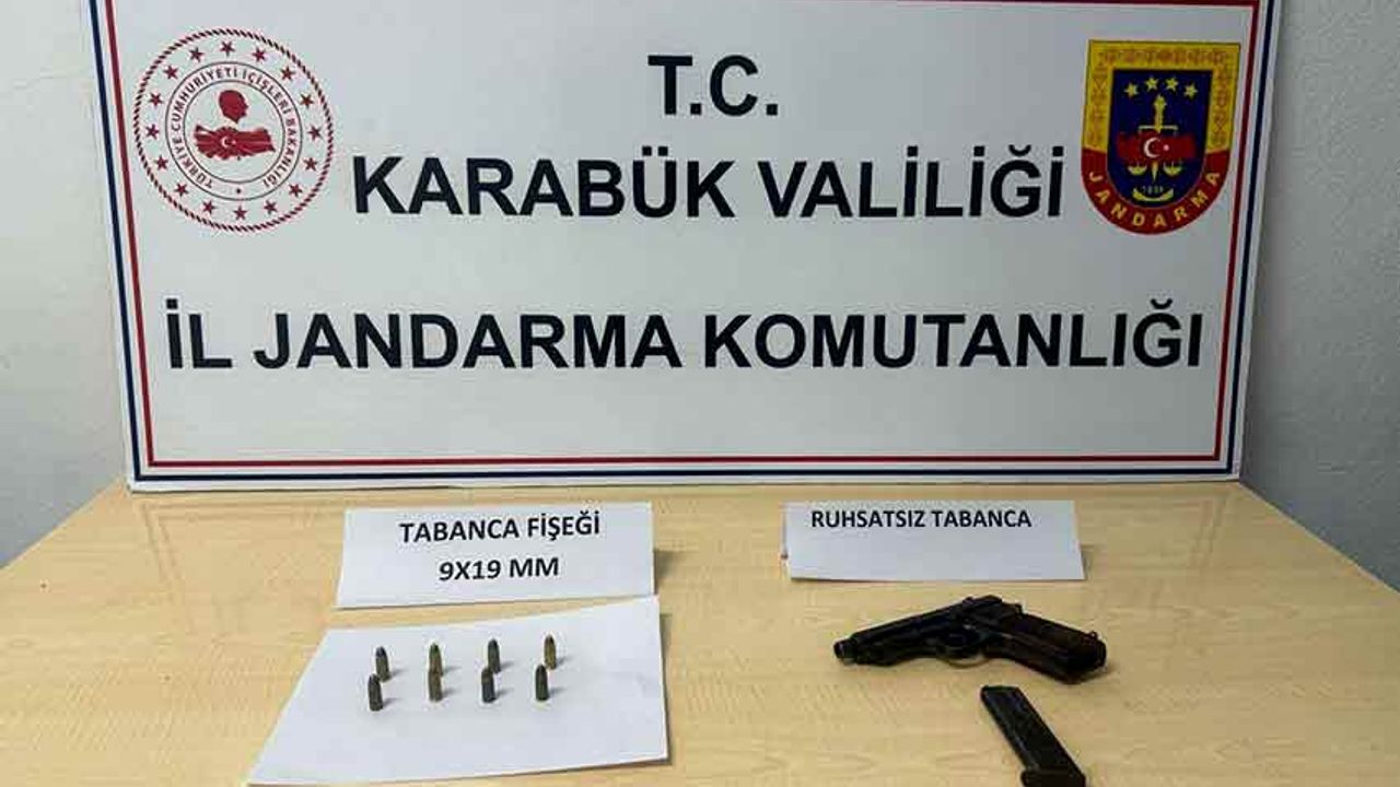 Edinilen bilgiye göre, Karabük İl Jandarma Komutanlığı ekipleri tarafından ilçede gerçekleştirilen uygulama sırasında bir şahsın üzerinde ve aracında yapılan aramada, bir adet ruhsatsız tabanca, tabancaya ait bir adet şarjör ve 8 adet 9 mm çapında fişek ele geçirildi.