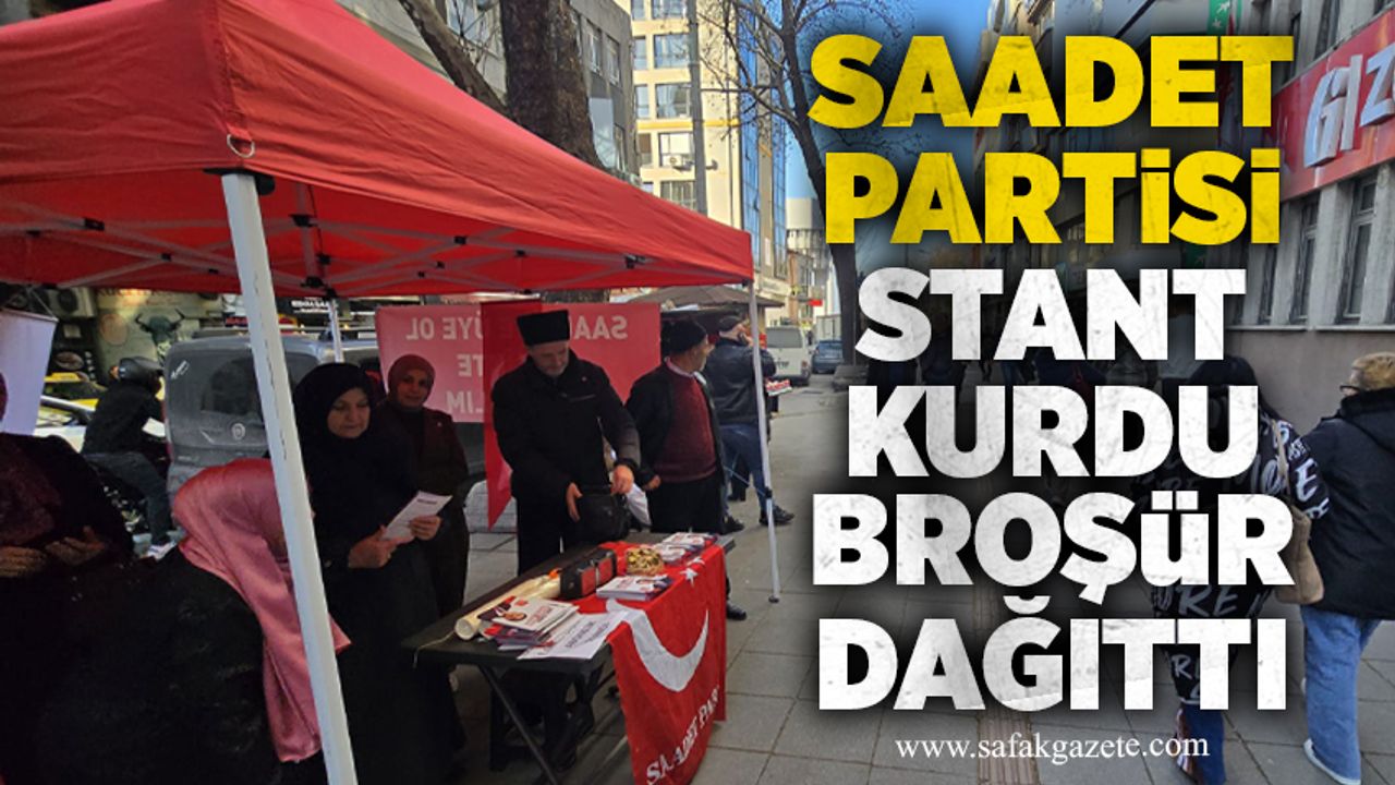 Saadet Partisi Zonguldak örgütü tarafından kent merkezinde bulunan Vergi Dairesi önünde kurulan stantta, vatandaşlara bilgilendirme broşürleri verildi. Stant çalışması kapsamında, Saadet Partisi Genel Başkanı Mahmut Arıkan’ın mesaj ve çalışmalarını içeren broşürler dağıtılarak vatandaşlar bilgilendirilerek üye yapıldı. Saadet Partisi vatandaşların üye stantlarına yoğun ilgi gösterdi.