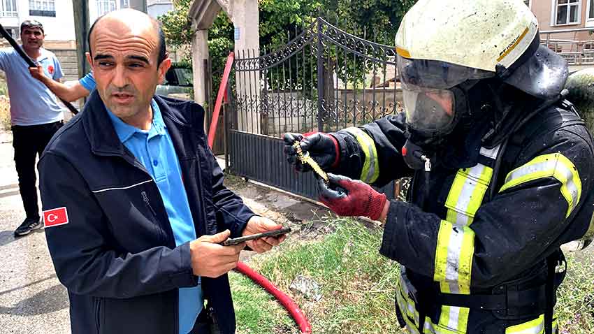 Olay, öğle saatlerinde Şeyh Edebali Mahallesi 1676. Sokak üzerinde bulunan müstakil evin 2'nci katında yaşandı. Edinilen bilgiye göre, eşinden kısa süre önce boşandığı öğrenilen O.A. isimli öfkeli koca, eski eşi S.T. ile sabah saatlerinde evlerinde yeniden tartışarak kavga etti. Bunun üzerine S.T. evden ayrılarak bir yakınının evine gitti. Duruma öfkelenen koca da benzinle evi ateşe vererek evden ayrıldı. Alevler kısa sürede evi sararken, komşuların ihbarı üzerine olay yerine çok sayıda itfaiye ve polis ekibi sevk edildi. İtfaiye ekiplerinin müdahalesiyle yangın söndürülerek kontrol altına alındı. İtfaiye erleri yangında içeriden çıkardığı cep telefonu ve takıları polise teslim etti. Yangında ise evin içindeki eşyalar tamamen yanarak kullanılamaz hale geldi. Olaydan sonra evden ayrılan O.A., Yunus Emre Polis Merkezine giderek teslim oldu.