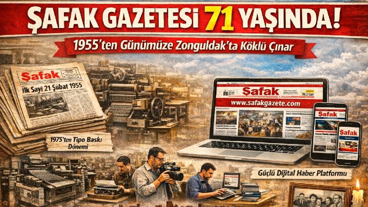 Zonguldak basınının köklü çınarı Şafak Gazetesi, 21 Şubat 2026 tarihi itibarıyla 70’nci yılını geride bırakarak 71’nci yaşına adım attı. 1955 yılında 4 sayfa olarak yayın hayatına başlayan ve o dönem Zonguldak merkezde yayımlanan tek günlük gazete olma özelliğini taşıyan Şafak Gazetesi, bugün de ilk günkü heyecan ve sorumluluk bilinciyle yayın hayatını sürdürüyor.