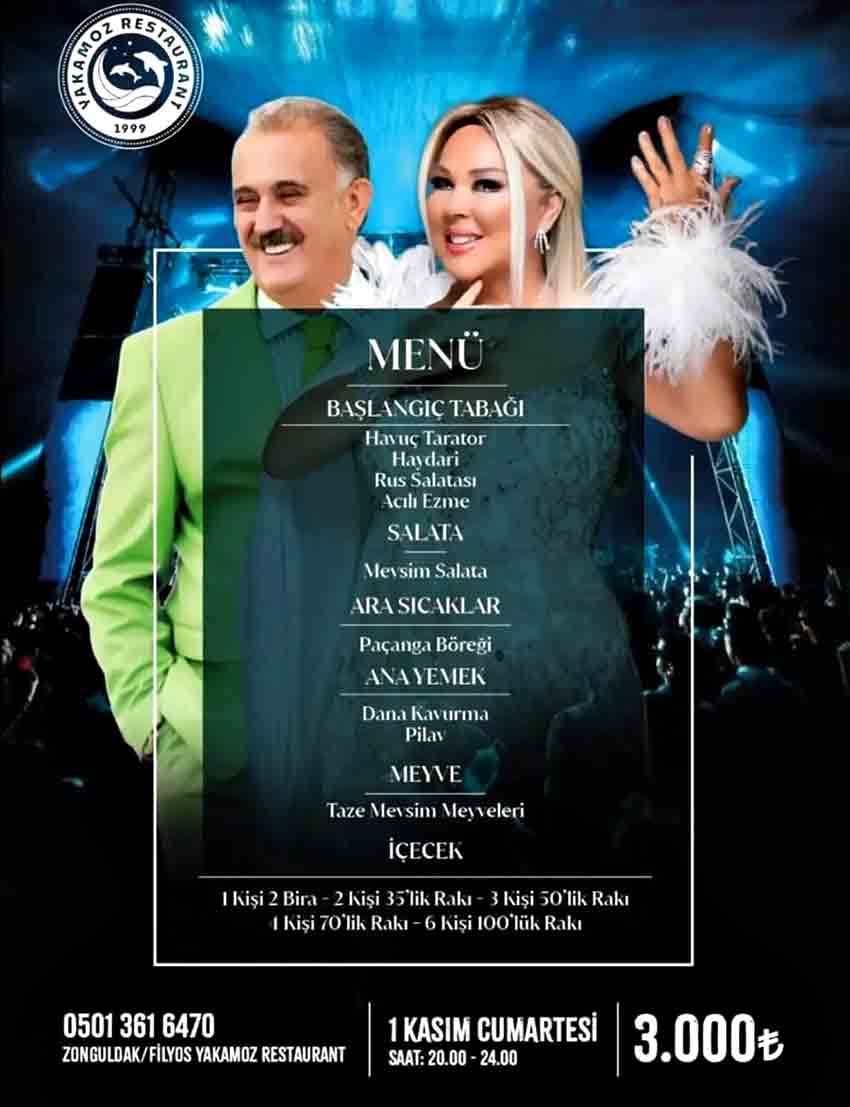 Çift, 1 Kasım Cumartesi akşamı Filyos Yakamoz Restaurant’ta sahne alacak. Etkinlik saat 20.00’de başlayıp 24.00’e kadar sürecek ve ziyaretçilere unutulmaz bir gece yaşatacak.