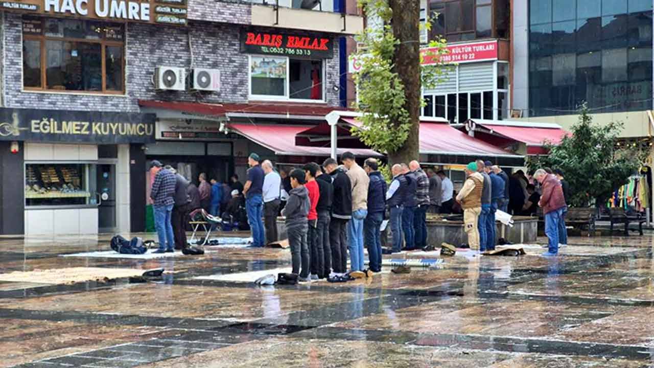 Kentte gece saatlerinden itibaren başlayan ve cuma namazı vaktinde de devam eden yağışlı hava, hayatı olumsuz etkiledi. Cuma namazını kılmak için camilere giden vatandaşlar, iç mekanların tamamen dolması üzerine avlulara yöneldi. Cemaatin bir kısmı, yanlarında getirdikleri seccadeleri ıslak zemine sererek namazlarını sağanak altında eda etti.