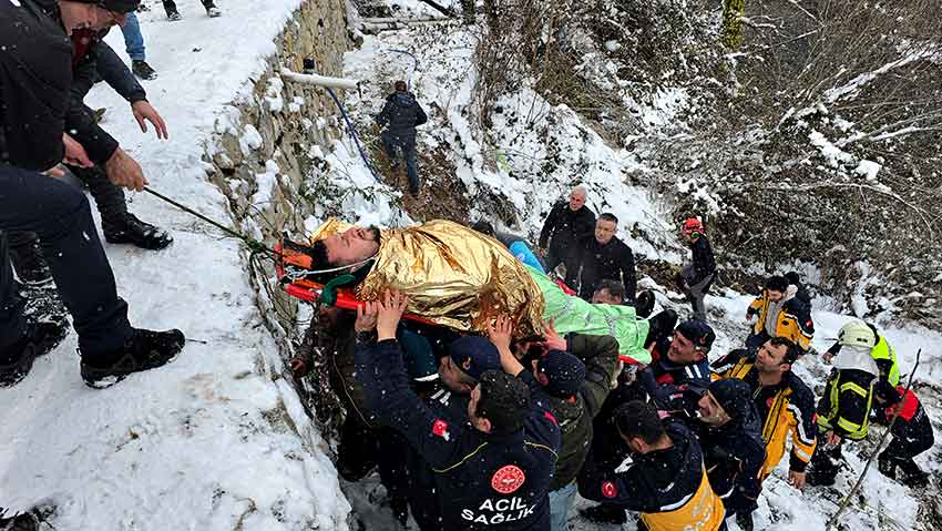 Öte yandan olayı gören Kamil Akmaz, park ettiği aracına bakmak için aşağıya indiğini söyleyerek, "Araç Danaköy tarafından geliyordu. Yolda buz vardı ve duramayınca kayarak, kanyona dereye uçtu. Benim gözümün önünde olunca hemen arayıp yardım istedim" dedi.