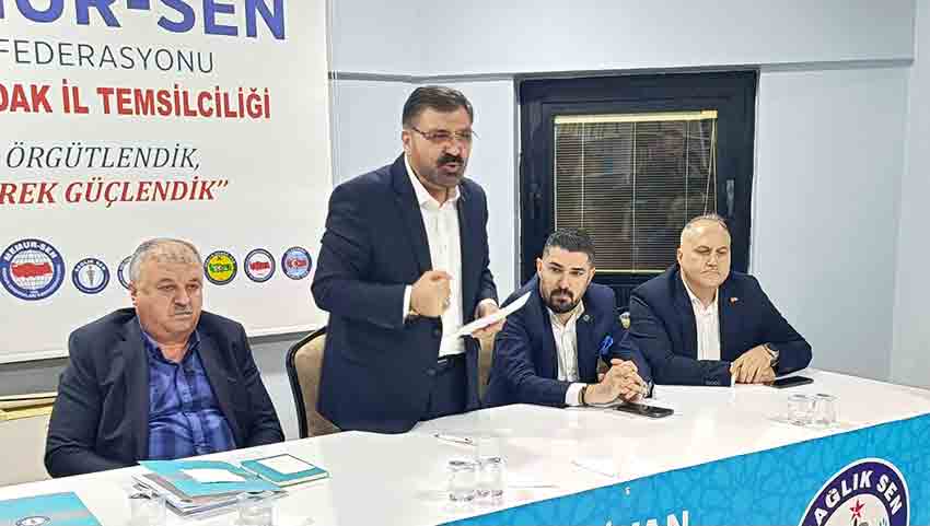 Sağlık ve Sosyal Hizmet Çalışanları Sendikası (Sağlık-Sen) Genel Başkan Yardımcısı Sinan Kuluöztürk, Sağlık-Sen Zonguldak 1 ve 2 No’lu Şubeler tarafından düzenlenen İl Divan Toplantısı’nda sağlık çalışanlarının özlük, mali ve sosyal haklarına ilişkin önemli açıklamalarda bulundu. Toplantıya sendika yöneticileri ve çok sayıda üye katıldı.