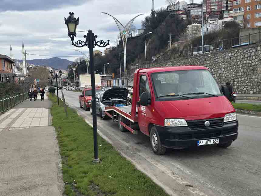 Zonguldak Kozlu sahil yolunda seyir halindeyken lastiği çıkan otomobil yolda kaldı. Olayda can kaybı ya da yaralanma yaşanmadı.