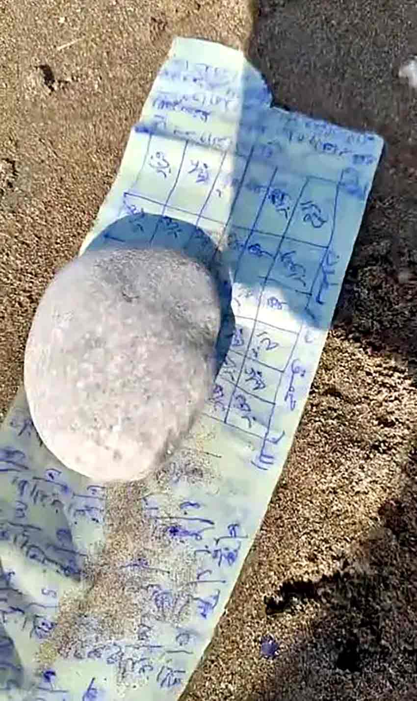 Yaklaşık birkaç metre uzunluğundaki kâğıtta yazıların büyü veya muska metni olabileceği öne sürüldü. Bazı vatandaşlar, yazıların anlamını bilmedikleri için korktuklarını ve dokunmadan yeniden denize bıraktıklarını söyledi.