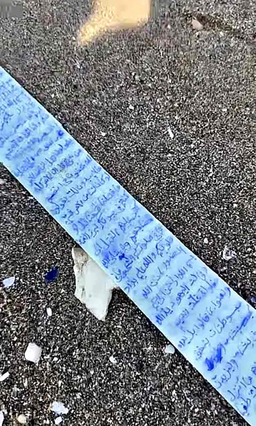 Bartın’ın İnkumu sahilinde sabah saatlerinde ilginç bir olay yaşandı. Denizin kıyısına vuran uzun bir kâğıtta yer alan Arapça yazılar, çevredeki vatandaşların dikkatini çekti.