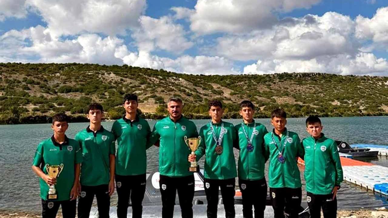 Sakarya Büyükşehir Belediyesi Spor Kulübü Kano sporcuları, önemli bir başarıya daha imza attı. 29 ve 30 Eylül tarihleri arasında Eskişehir’de düzenlenen Durgunsu Kano Olimpik Umutlar Yarışları’nda kürek çeken sporcular, ikincilik kupasını kaldırmaya hak kazandı. Zorlu mücadelede 500 metre yarışlarında U14 Erkekler kategorisinde Batuhan Kordon dördüncü olurken, U13 Erkekler kategorisinde Haktan Yağız Güz birinci, Efe Berk Güz ikinci, Yusuf Zorlu dördüncü ve Taha Mert Tunç beşinci sırada yer aldı. 200 metre yarışlarında ise U14 Erkekler kategorisinde Batuhan Kordon dördüncü oldu. U13 Erkekler kategorisinde Haktan Yağız Güz birinci, Yusuf Zorlu ikinci, Efe Berk Güz dördüncü ve Taha Mert Tunç beşinci olarak yarışları tamamladı.