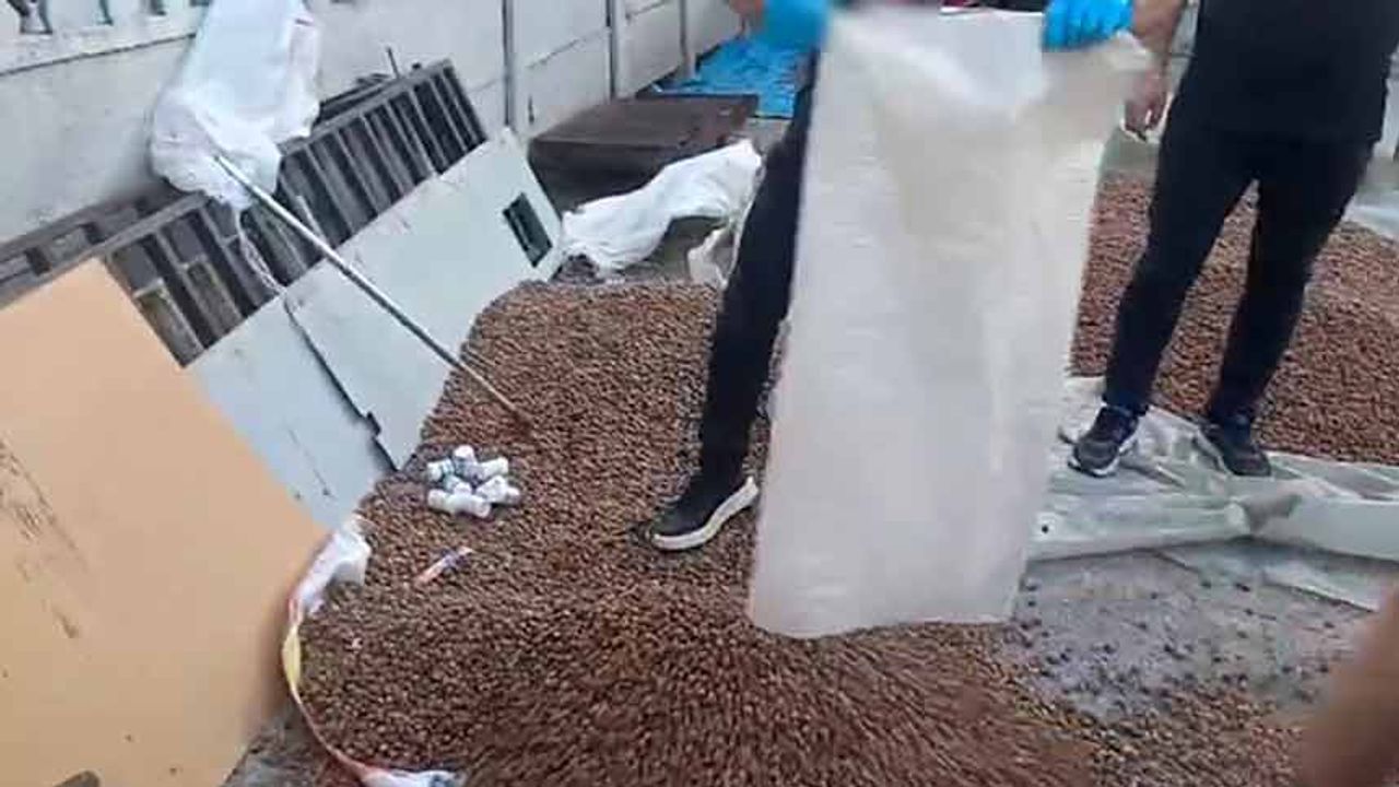 Öte yandan, jandarma ekiplerinin fındık çuvalı içerisinde uyuşturucuyu bulduğu anlar ise saniye saniye kameraya yansıdı.