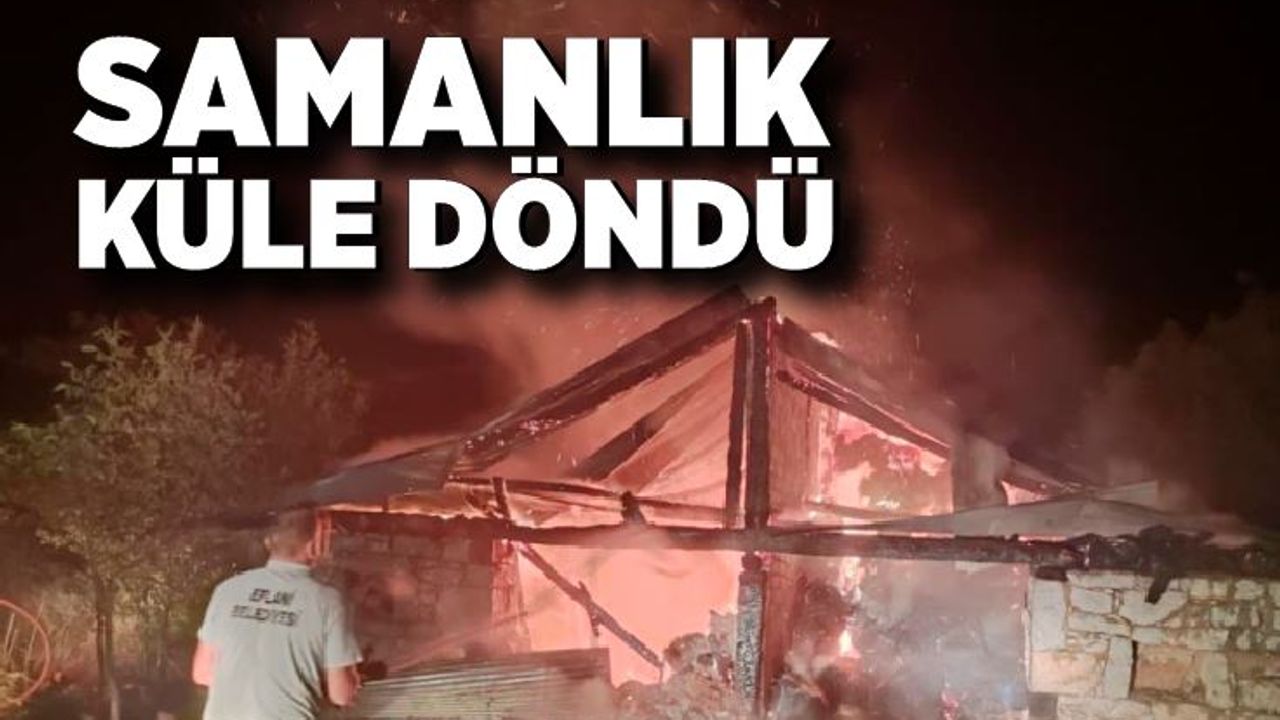 Eflani Belediyesi itfaiye ekiplerinin müdahalesiyle yangın kontrol altına alındı, ancak samanlık tamamen yanarak kül oldu.