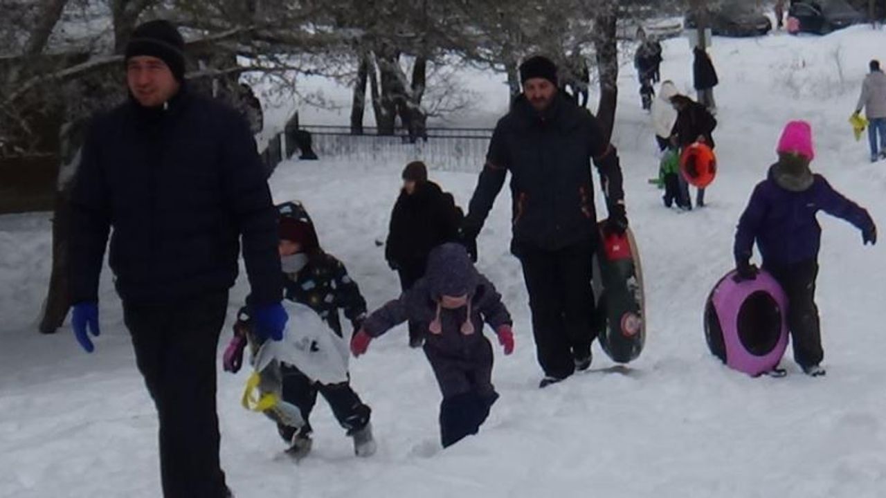 Abant’ta şambrelle kayma geleneği, bu kış sezonunda da renkli görüntülere sahne oldu. Ziyaretçiler, yanlarında getirdikleri şambrel ve poşetlerle tepelerden kayarak eğlenceli anlar yaşadı.