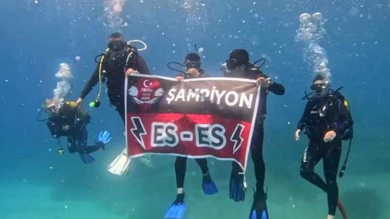 Eskişehirsporlu 7 dalgıçtan oluşan grup, İzmir’de denizde 26 metre derinlikte "Şampiyon ES-Es" yazılı pankartı açtı