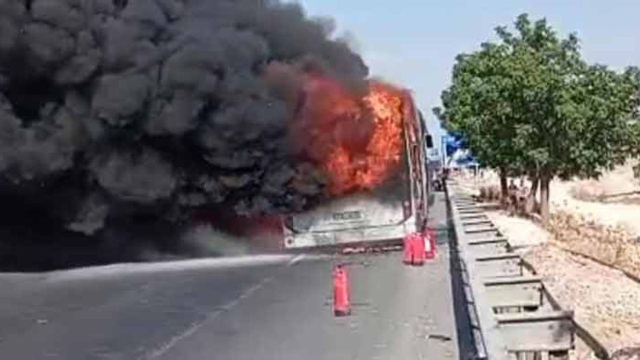 Edinilen bilgiye göre olay, Şanlıurfa - Mardin karayolunun Osmanbey Mahallesi yakınlarında meydana geldi. Harran Üniversitesi Osmanbey Kampüsüne seyir halindeki 90 numaralı şehir içi toplu taşıma otobüsü, iddiaya göre aşırı sıcaklık nedeniyle motor kısmında yangın çıktı. Yangını fark eden sürücü, aracı yol kenarına çekerek yolcuları tahliye etti. Durumun bildirilmesi üzerine olay yerine itfaiye ekipleri yönlendirildi. Kısa sürede bölgeye giden ekipler, yangını kontrol altına aldı. Ölü ve yaralının olmadığı yangında maddi hasar oluştu.