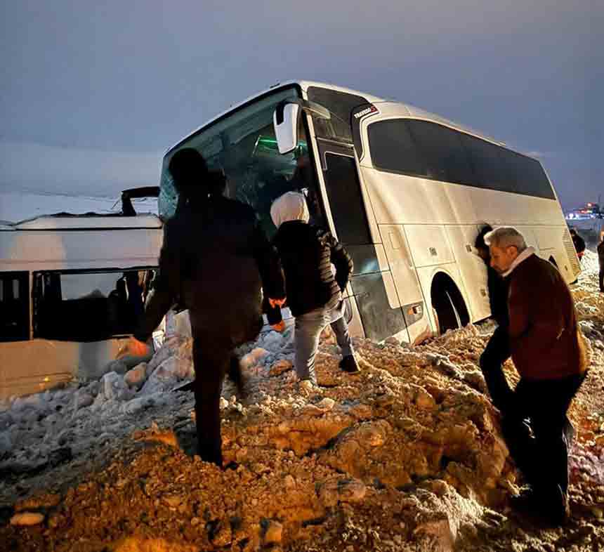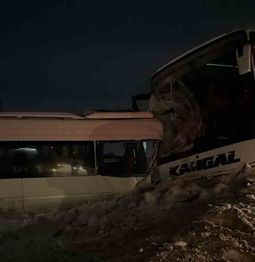 Kangal Termik Santrali’nde çalışan işçileri taşıyan ve C.C. idaresindeki servis otobüsü, Kangal yolunun 8’inci kilometresinde yoğun sis ve buzlanma nedeniyle kontrolden çıkarak yol kenarına kaydı.
