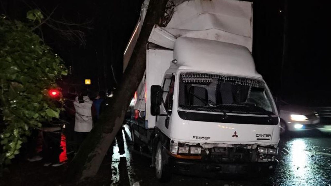 İstanbul’un Sarıyer ilçesinde, Hacıosman Mahallesi Hacıosman Bayırı’nda bir kamyonet, yağmur sonrası kayganlaşan yolda kontrolden çıkarak yol kenarındaki ağaca çarptı.