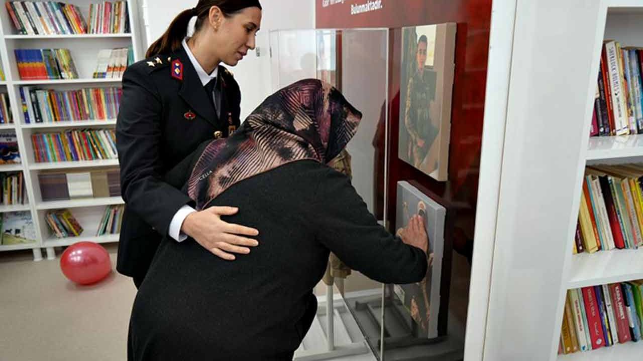 Kastamonu Jandarma Komando Eğitim Merkez Komutanlığı’nda görev yaparken geçirdiği beyin kanaması sonucu hayatını kaybeden Jandarma Uzman Onbaşı Miraç Kemal Yılmaz’ın adı, anlamlı bir projeyle yaşatılıyor. Şehidin anısını yaşatmak amacıyla Hacıbey Ortaokulu’nda kurulan kütüphane, düzenlenen törenle açıldı. Törene katılan anne Rabiye Yılmaz, oğlunun fotoğrafını severken gözyaşlarını tutamadı.