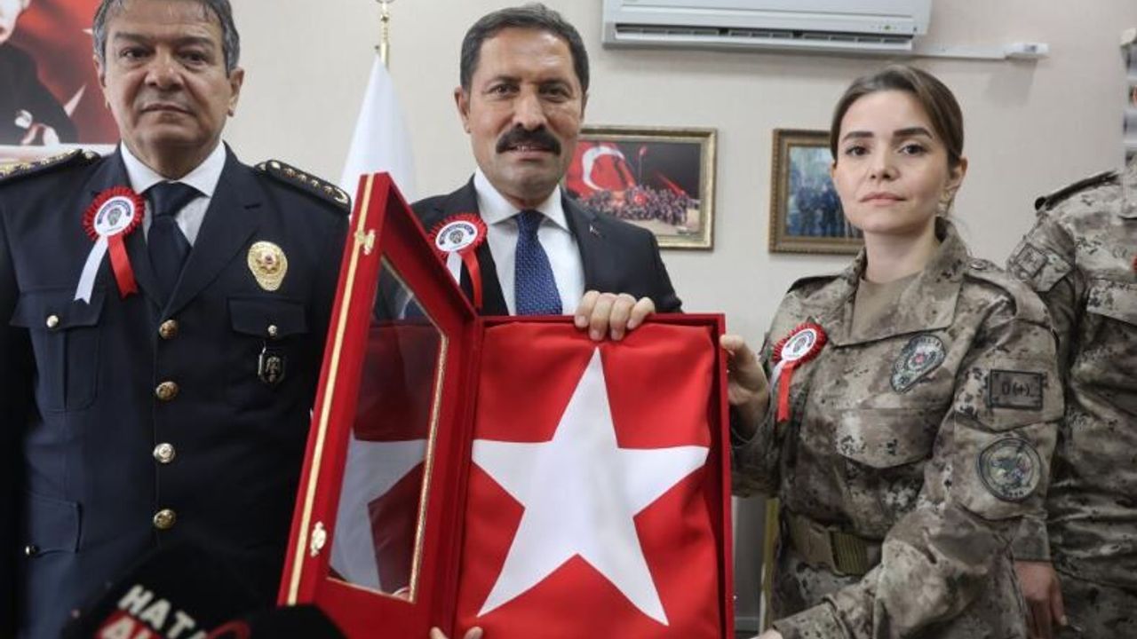 Hatay Valisi Mustafa Masatlı, Polis Haftası'nda ziyaret ettiği Özel Harekat Şube Müdürlüğü’nde Edanur’a Türk bayrağı taktim ederek, mesleğinde başarılar diledi.