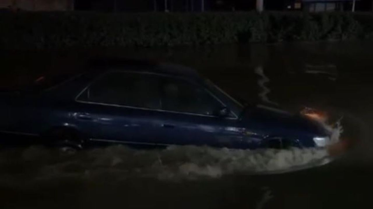 Çevredeki vatandaşlar, otomobilin sel suları arasında neredeyse yüzerek ilerlemesini cep telefonlarıyla görüntüledi. O anlar sosyal medyada kısa sürede yayıldı.