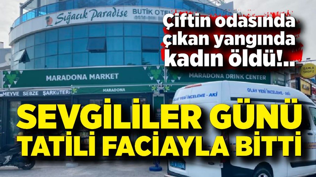 İzmir’in Seferihisar ilçesinde Sevgililer Günü tatili için otele giden çiftin kaldığı odada çıkan yangın faciayla sonuçlandı. Yangında 46 yaşındaki Emine Ayten hayatını kaybetti, eşi Mehmet Ayten ise ağır yaralandı.