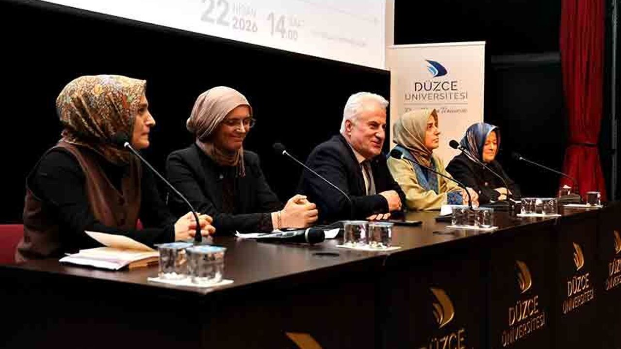 Düzce Üniversitesi İstiklal Konferans Salonu’nda Panele; İlahiyat Fakültesi Dekanı Prof. Dr. Ali Ertuğrul, Rektör Danışmanı Prof. Dr. Vildan Coşkun, İlahiyat Fakültesi Dekan Yardımcısı Doç. Dr. Emine Gümüş Böke, akademisyenler ve öğrenciler katılım sağladı.