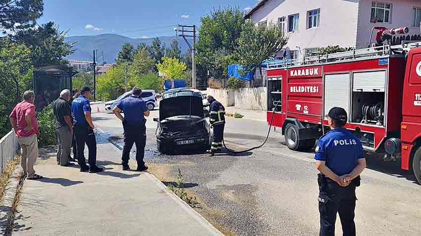 Karabük'te seyir halindeki otomobil alevlere teslim oldu. Yangında otomobilde maddi hasar meydana geldi.