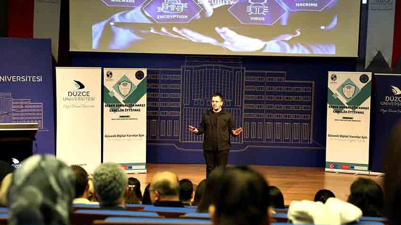 Düzce Üniversitesi Araştırma Dekanlığı ile Sakarya Üniversitesi iş birliğinde, dijital dünyada çevrim içi güvenlik farkındalığını artırmak ve siber zorbalıkla mücadele bilincini geliştirmek amacıyla “Siber Zorbalıkla Mücadelede Sen De Varsın” başlıklı eğitim düzenlendi.
