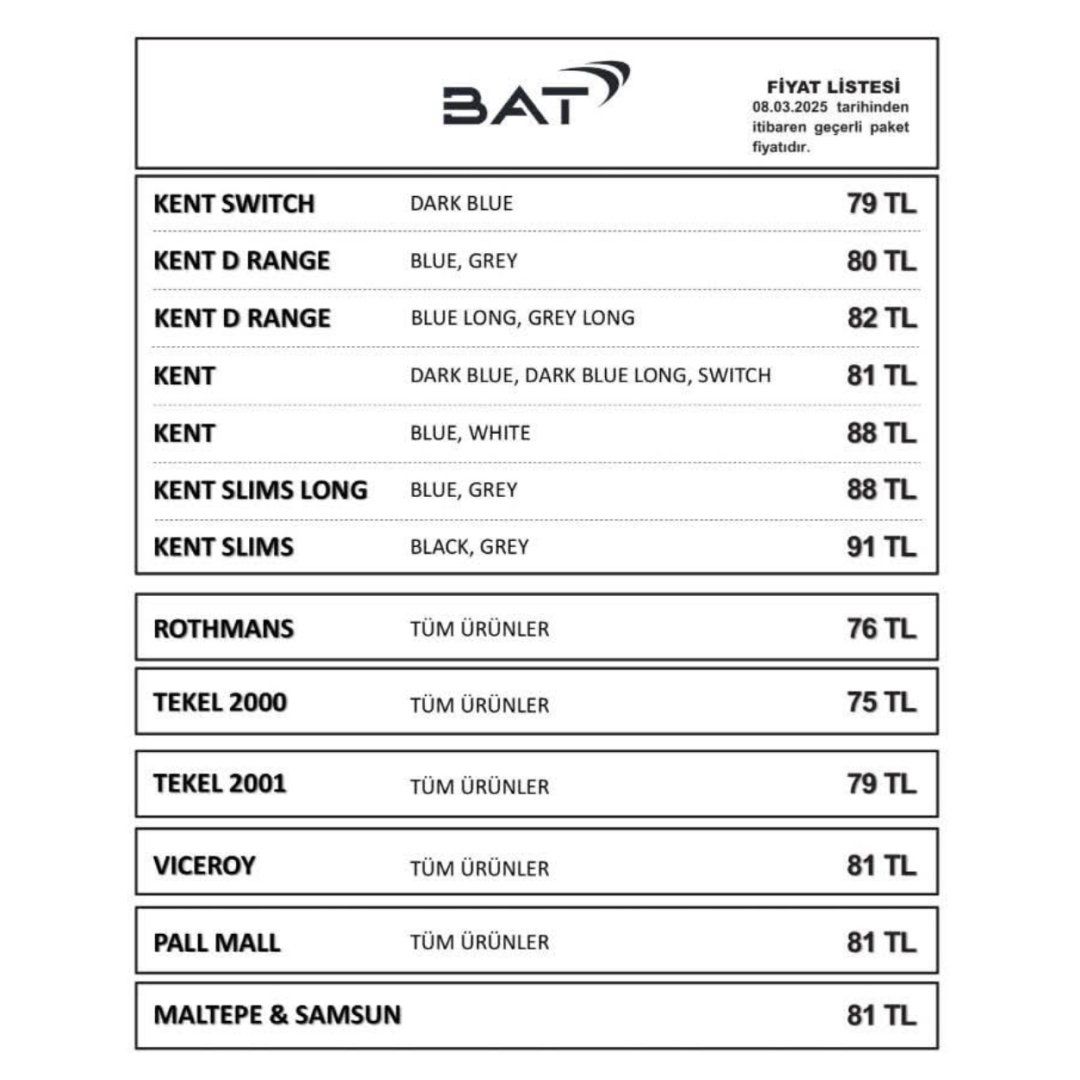 Gelen zamla birlikte BAT grubundaki en düşük fiyatlı sigara 79 TL’ye yükselirken, en pahalı sigara ise 91 TL’den satılmaya başlandı. Son aylarda peş peşe gelen fiyat artışları sigara tiryakilerinin cebini yakmaya devam ediyor.