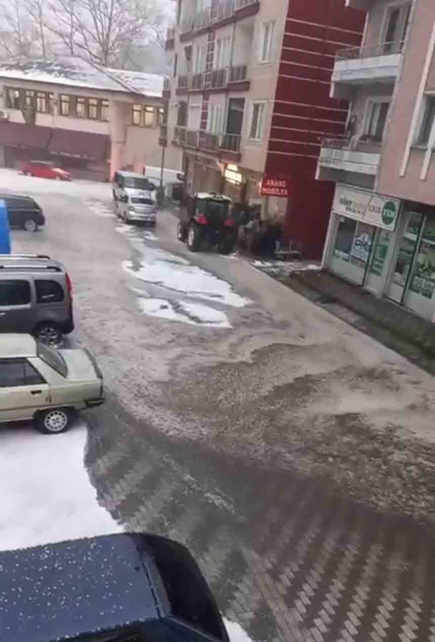 Ulus ilçesine bağlı Abdipaşa beldesinde ise gün içerisinde etkili olan dolu yağışı kısa sürede çevreyi beyaz örtüyle kapladı. Dolu nedeniyle belde ve bazı köylerde kartpostallık görüntüler oluştu.