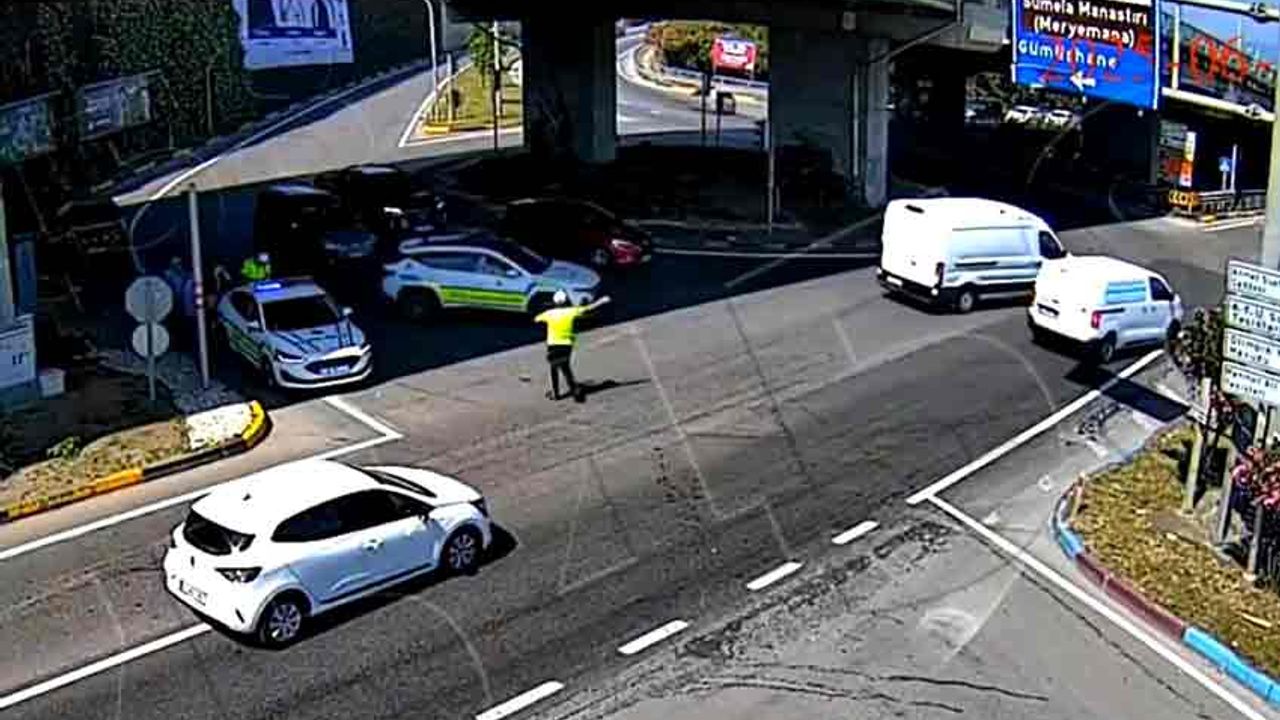 Trabzon’un Ortahisar ilçesindeki Mehmet Ali Yılmaz Tesisleri Kavşağı'nda sınava yetişmeye çalışan bir aile trafik kazasına karıştı. Maddi hasarlı meydana gelen trafik kazasında sınav merkezine girişine kısa bir süre kalan öğrenci polis ekiplerinin müdahalesi ile kısa sürede ulaştırıldı. O anlar Kent Güvenlik Yönetim Sistemi (KGYS) kameralarına yansıdı.