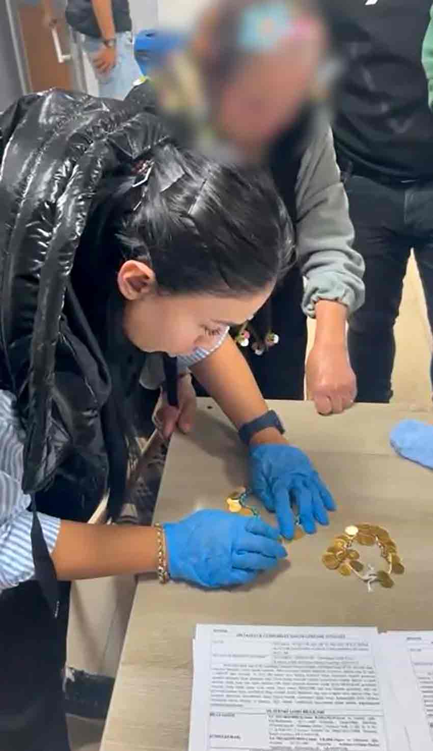 Zabıta ve polis ekiplerinin yaptığı aramada, kadının giysilerinin arasına sakladığı 67 çeyrek altın ve yüklü miktarda Türk Lirası bulundu. Elde edilen tüm para ve altınlar tutanakla kayıt altına alınırken, kadına idari para cezası uygulandı.