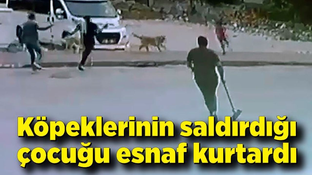 2 sokak köpeğinin peşinden koştuğu çocuğu çevredeki esnaf kurtardı. O anlar güvenlik kamerasına yansıdı.