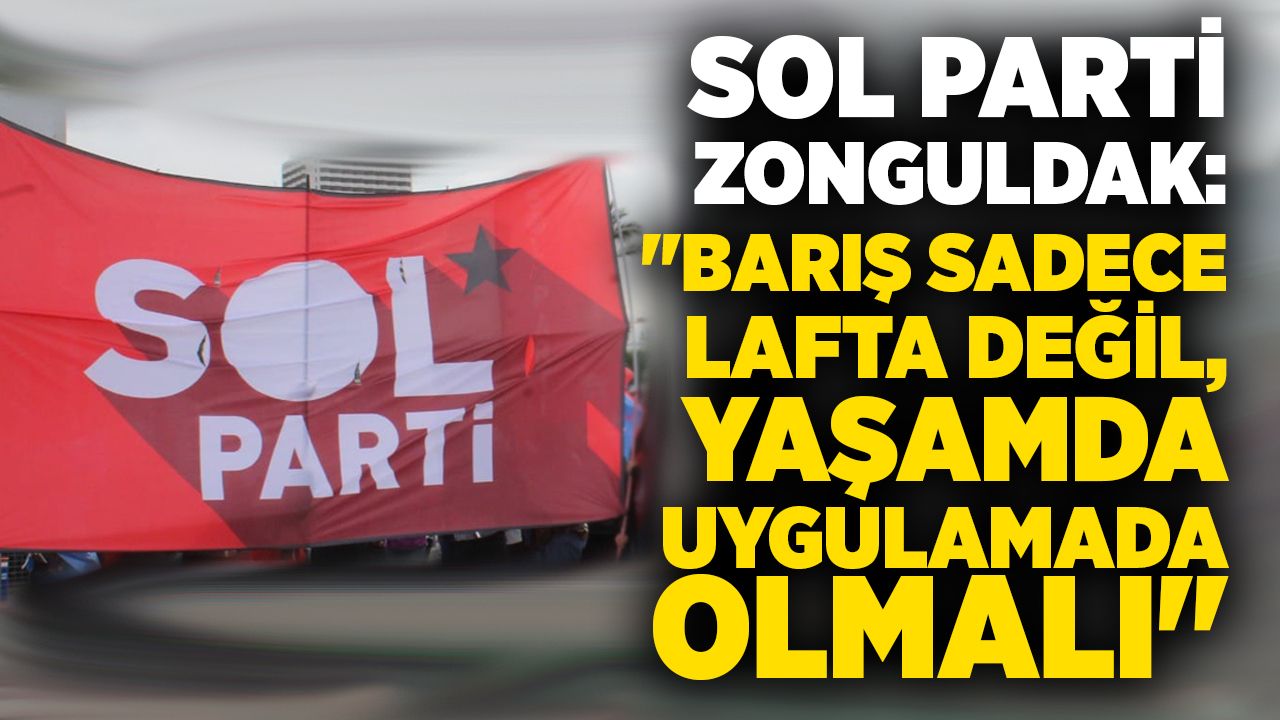 Sol Parti Zonguldak İl Örgütü, 1 Eylül Dünya Barış Günü nedeniyle yaptığı yazılı açıklamada, savaşlara ve emperyalist müdahalelere karşı güçlü bir duruş sergileyerek, barışın yalnızca lafta değil, yaşamda ve uygulamada olmasını talep etti. Parti, dünya genelindeki emperyalist müdahalelere dikkat çekerek, özellikle Gazze'deki soykırıma ve Ortadoğu'daki savaşlara tepki gösterdi.