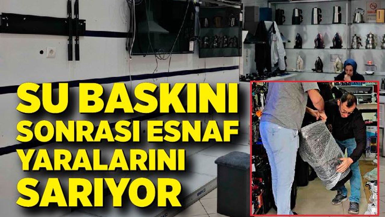Yaklaşık 10 iş yerinin su altında kaldığı bölgede, esnaf çamurla kaplanan zeminleri temizledi, kullanılamaz hale gelen ürünlerini ise dışarı çıkardı. Zarar gören esnaflar, oluşan hasarın ardından yetkililerden çözüm bekliyor.